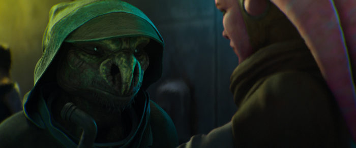 On the other side of this compelling series is Brander Lawson (Wagner Moura), a good cop in this sector of Janix, who is completely opposed to the Empire, paired with his faithful partner of a droid, Two-Boots (Richard Ayoade), who despite his joyful disposition, is all about following protocol, even if that means requesting assistance from the Empire, which the presence of Maul absolutely requires. Throwing even more gasoline on the process is the discovery that Lawson’s ex-wife works for the Empire.